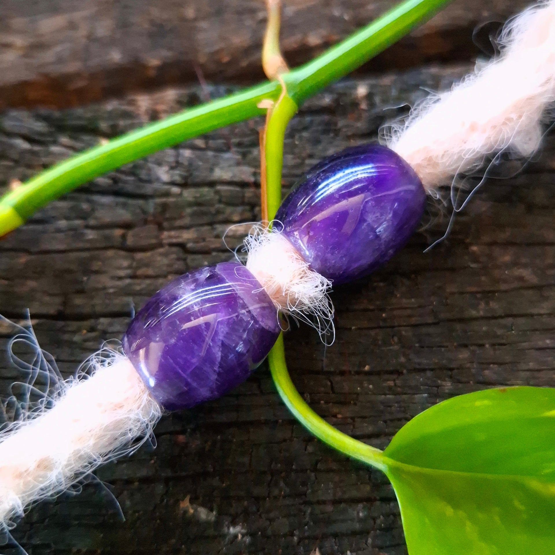 Set of 2 natural Amethyst barrel shaped beads to fit skinny dreadlocks.