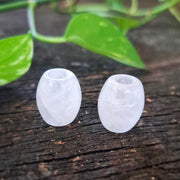 Set of 2 natural Clear Quartz barrel shaped beads to fit skinny dreadlocks.