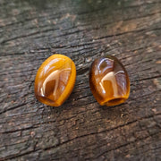 Set of 2 natural Tigers Eye barrel shaped beads to fit skinny dreadlocks.