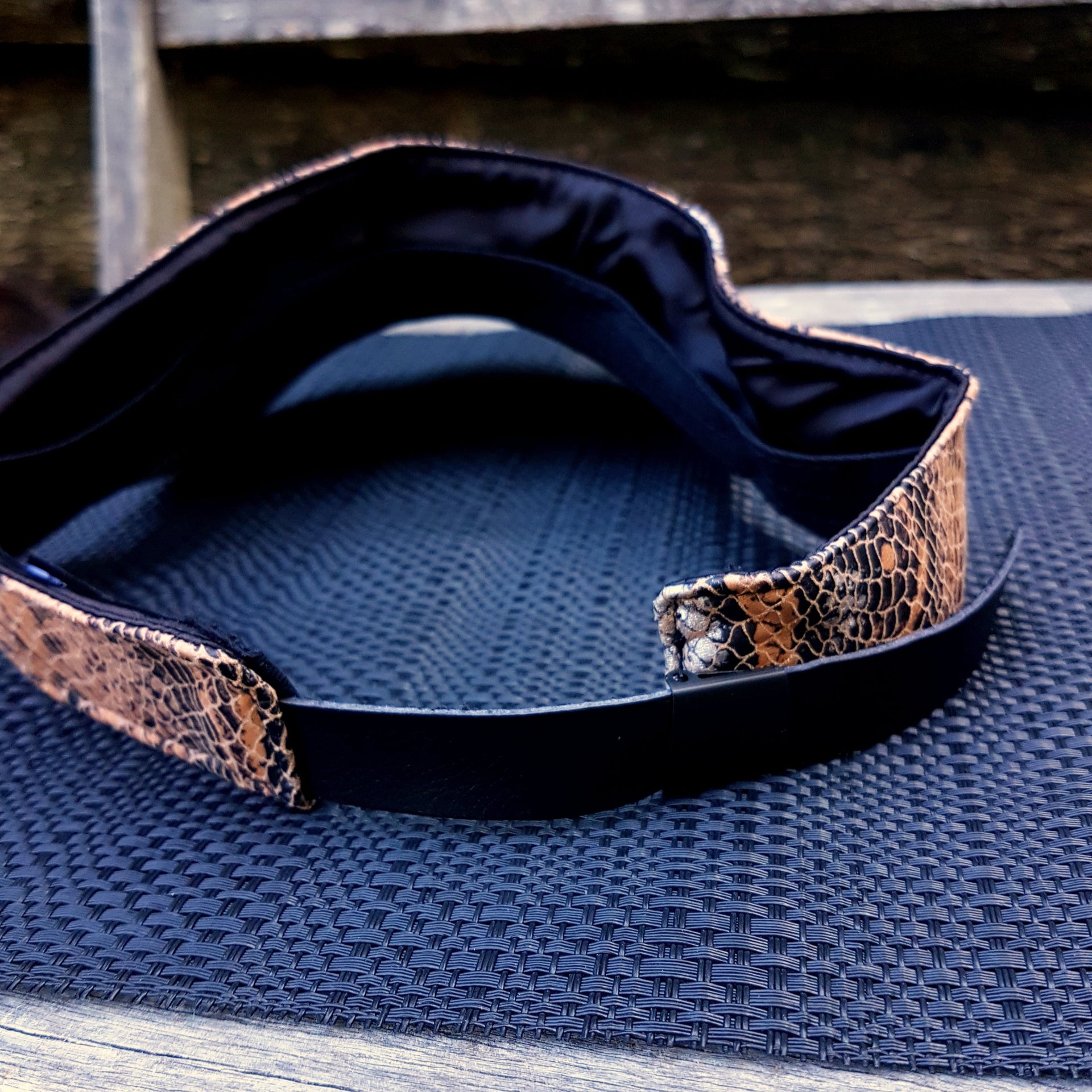 Jazz up your dread style with this snazzy snakeskin print visor cap! Featuring a leather strap with buckle closure at the back, you'll be rocking it like nobody's business - no snake charmer necessary 🐍