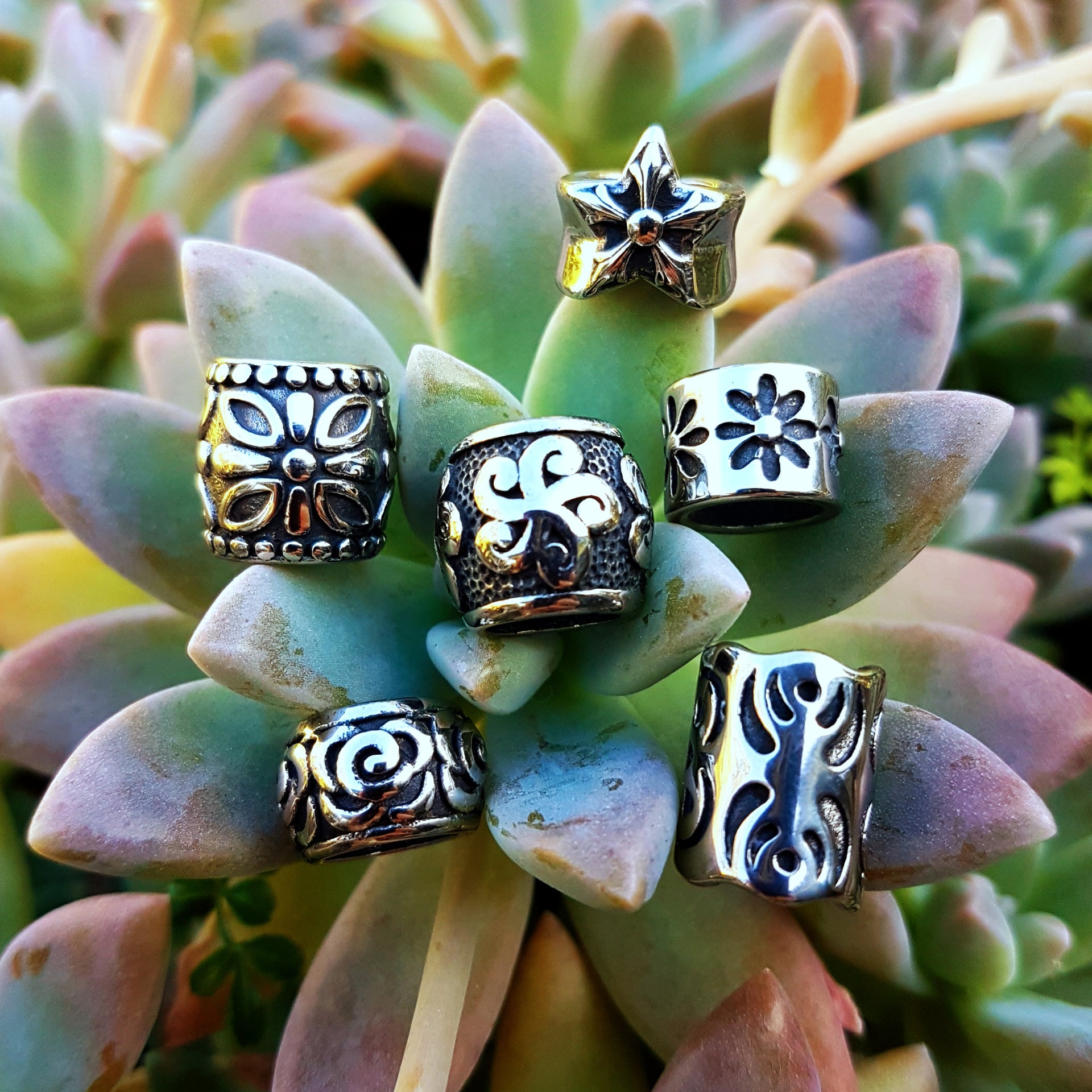 Set of 6 stainless steel dread beads to fit medium size dreadlocks.